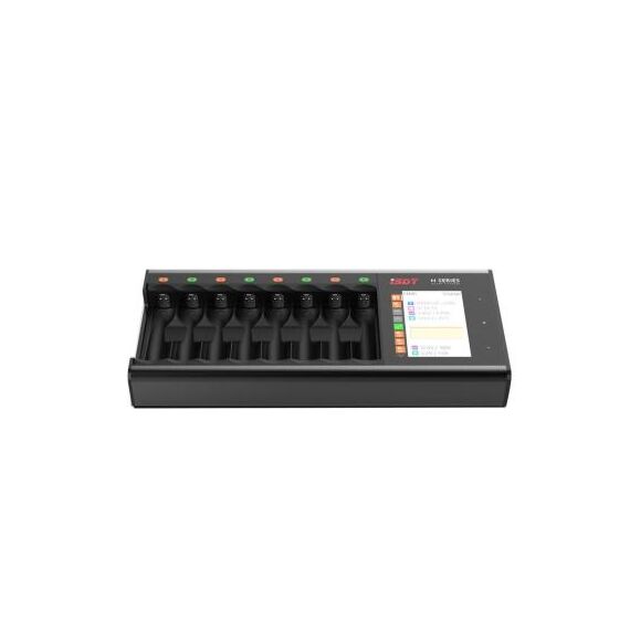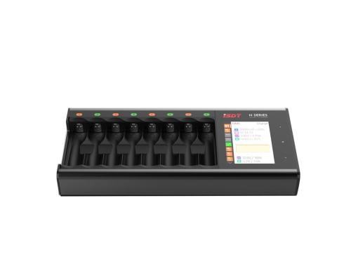 Das N8 von ISDT ist ein intelligentes Ladegerät für 1 bis max. 8 Batterien (AA oder AAA) des Typs Li-Ion, LiHV, LiFe, NiMh, NiCd und NiZn. Es verfügt über ein Gehäuse aus einer Aluminium-Magnesium-Legierung. Darin ist ein wärmeableitendes Kühlsystem, das für einen zuverlässigen Lade- und Entladevorgang sorgt, integriert. Die Anzeige der Parameter erfolgt über ein helles 2,4"-Touch-Display.