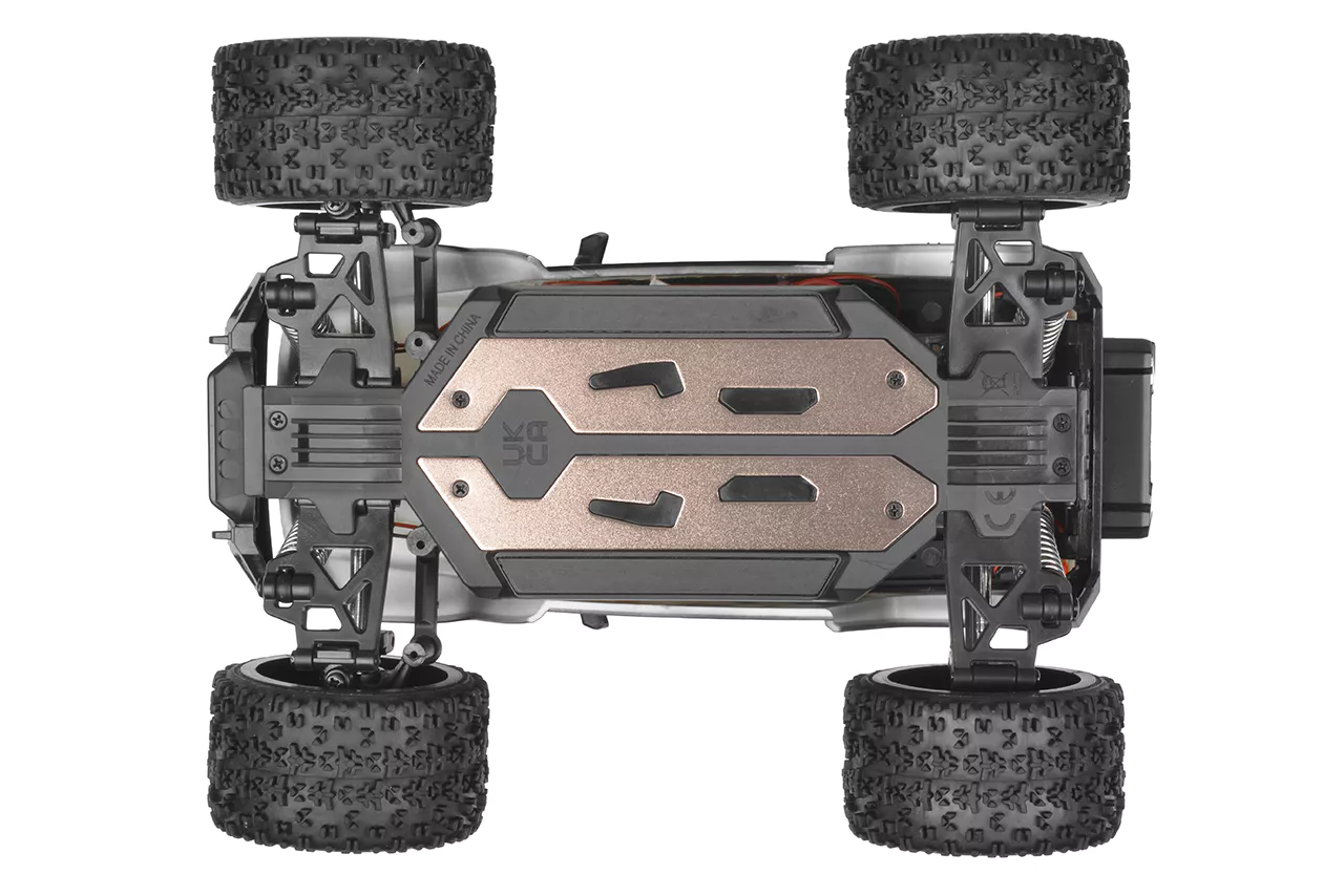 Unter der Karosserie verbirgt sich ein robustes und ausgereiftes Chassis. Das Fahrgestell aus Verbundwerkstoff, das mit Aluminium-Chassisplatten und einem Aluminium-Oberdeck verstärkt ist, bietet Stärke und Ausgewogenheit. Antriebswellen aus Stahl und doppelte Differentiale sorgen für eine reibungslose, zuverlässige Kraftübertragung.