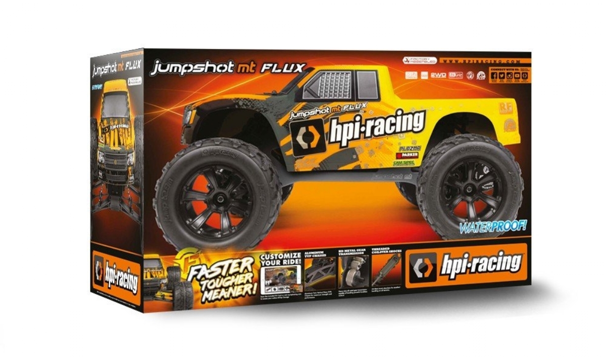 Der Jumpshot MT FLUX ist das Monster-Truck-Mitglied der neuesten Ausgabe der großartigen Jumpshot-Dynastie! Die Fans lieben diese RC-Basher so sehr, dass wir die V2-Spezifikation genommen haben, sie mit unserer FLUX Brushless-Power aufgerüstet haben und sie mehr als je zuvor aufgemotzt haben!//////Wir haben bereits die Plattform verbessert und den Jumpshot V2 schneller, härter und fieser gemacht - mit brandneuen Features wie einem optimierten Getriebe, das für schnelle Beschleunigung und hohe Höchstgeschwindigkeiten sorgt, und wichtigen Verbesserungen bei der Haltbarkeit, darunter neue Antriebszahnräder, Aufhängungsteile und Servo-Saver!//////Aber mit dem Jumpshot FLUX heben wir die Dinge auf ein ganz anderes Niveau: Mit dem FLUX 3S Speed Controller und dem bürstenlosen 4000KV Motor wird der Spaß noch größer! Füge einfach einen LiPo-Pack hinzu, um verrückte Stunts, Wheelies auf Kommando und verrückte Geschwindigkeitsfahrten zu ermöglichen!!!//////Unter der Karosserie befindet sich ein TVP (Twin Vertical Plate)-Chassis im Savage-Stil für ein supersteifes Chassis und ein ausgewogenes Gewicht. Das modulare Design des Chassis ermöglicht eine einfache Wartung und einen dauerhaften Schutz der gesamten Elektronik vor Stürzen. Die Batterie ist von der Unterseite des Trucks aus schnell zugänglich, so dass der Batteriewechsel besonders schnell vonstatten geht - für mehr Fahrspaß! Der Jumpshot MT FLUX wurde außerdem mit einem brandneuen Look aktualisiert, der in Gärten, Dirt Tracks und Skateparks auf der ganzen Welt für Aufsehen sorgt.