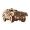 Der Modellbausatz des Kampffahrzeugs Dosor-B von Ugears wird ebenfalls in der Ukraine hergestellt. Seine "Panzerung" besteht aus 3,7 mm dickem Sperrholz und er verfügt über Allradantrieb, Vollfederung und einen federbetriebenen Motor, dank dem er eine beachtliche Strecke zurücklegen kann (ca. 8 Meter). Und weil wir Ugears sind und unsere Fans gerne mit coolen Extras überraschen und erfreuen, ist das Kampffahrzeug Dosor-B von Ugears genau wie sein Gegenstück in der wirklichen Welt mit einer funktionierenden Winde für die Selbstbergung oder die Bergung anderer Fahrzeuge ähnlichen Gewichts ausgestattet. Ziehen Sie die an der vorderen Stoßstange angebrachte Winde heraus, haken Sie sie in einen Gegenstand ein und sehen Sie, wie sie den Dosor-B vorwärts zieht!
