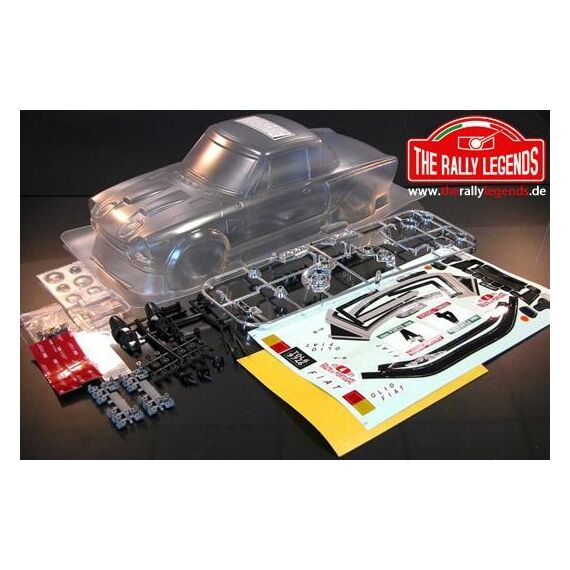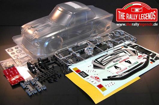 Karosserie - 1/10 Rally - Scale - Unlackiert - Fiat 124 mit Aufklebern und Zubeh