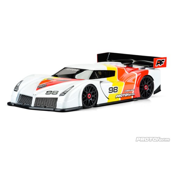 So we're following suit here at PROTOform. The game-changing Hyper-SS race body brings 1/8th GT cars into the 21st Century in both style and performance. The radical, low-slung shape includes a unique rear-wing with molded-in Gurney flap. At the rear window area, low-drag louver vents can be trimmed out to allow for efficient engine cooling if required. The Hyper-SS meets all 1/8th GT Global Body Spec rules and is already approved for IFMAR competition at the upcoming World Championship