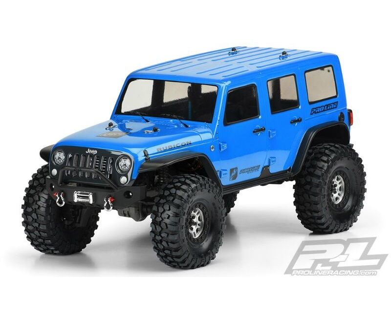 This is a Jeep® Wrangler Unlimited Rubicon clear body for TRX-4®. Pro-Line is ready to unleash the officially licensed Jeep® Wrangler Unlimited Rubicon body for your Traxxas® TRX-4®! This body will completely transform your Truck into an Ultra Scale modern Jeep Rig perfect for Rock Crawling. The details from the full-size Jeep® Wrangler Rubicon have been faithfully recreated and feature a few molded in full-size style upgrade parts like rock sliders and tube fenders. This Pro-Line body is much lighter than the stock TRX-4® body for lower center of gravity and improved crawling performance. The Jeep® Unlimited Rubicon body also features improved clearance front and rear allowing you to tuck in the bumpers for massively improved approach and descent angles to get you up and over obstacles easier than ever before! Window masks, Paint-then-peel overspray film and fully licensed detailed stickers are included to finish off the look. Get your Jeep on with Pro-Line's new Jeep® Wrangler Unlimited Rubicon Body for TRX-4®!