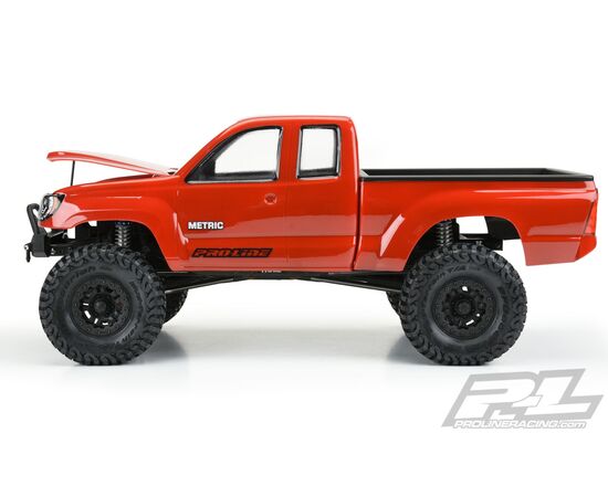 The Metric can be customized to represent an early 2000's import truck often chosen as a project vehicle for full-size rock crawling or adventuring. The front hood is molded as a separate piece so you can open the hood to expose any detail you choose to add. The engine bay is empty, waiting for you to finish the build, and the sticker sheet represents that with exposed shock mounts, cross member and brake line detail. The front grill area is sunk in allowing for a highly detailed 3D printed front grill of your choice and the sticker sheet represents the exposed radiator detail just like the real thing. If you are ready for a unique, highly detailed, custom build that's accessible for every skill level, then you need Pro-Line's new Builder's Series: Metric Body today!