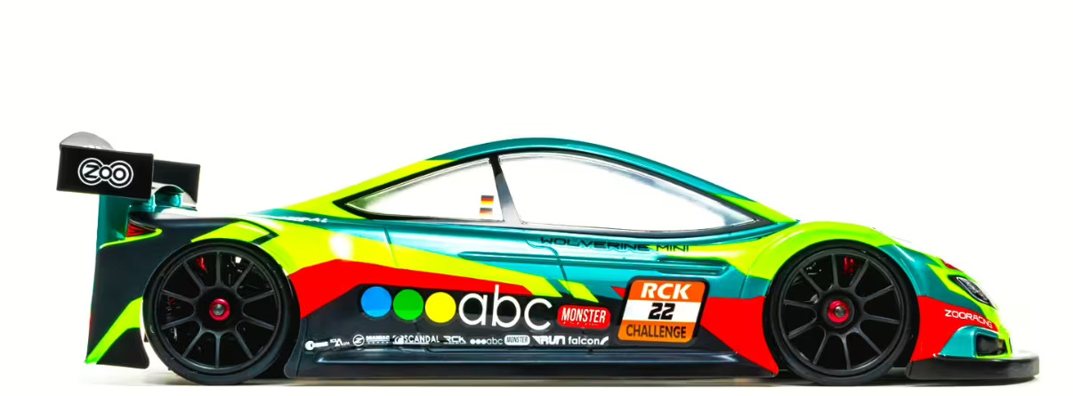 Die Wolverine MINI, der kleine Bruder der äußerst erfolgreichen Wolverine MAX 1:10 On-Road-Karosserie von ZooRacing. Der zweifache IFMAR-Weltmeister und vierfache EFRA-Europameister in diesem neuen Formfaktor wurde entwickelt, um die Leistungsgrenzen in der M-Chassis Mini-Tourenwagen-Klasse zu erweitern. Die Wolverine MINI stellt einen großen Fortschritt in Sachen Aerodynamik und Handling dar.