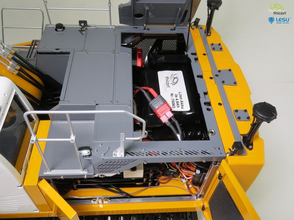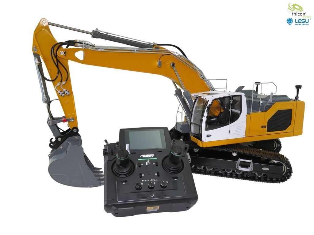 Der Bagger ist bis auf den Akku sofort einsatzbereit und wird fertig eingestellt mit der neuen FlySky Paladin PL18EV geliefert.