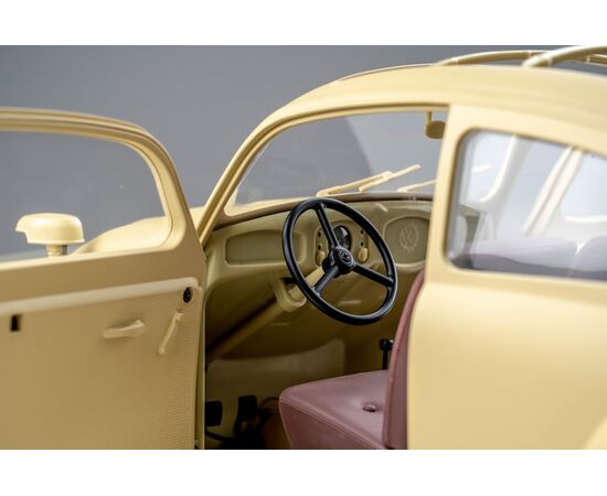 Die Weichgummi-Sitze im Innenraum sind mit einer simulierten Stoff-Textur bezogen und eignen sich hervorragend für Fahrerfiguren im Maßstab 1:12. Die Rücksitzlehnen können heruntergeklappt werden, um den Zugang zu den Vorräten aus dem Kofferraum zu erleichtern. Die Armlehne vor den Rücksitzen hat in der Mitte vier Clips, die in Löcher im Boden passen, um