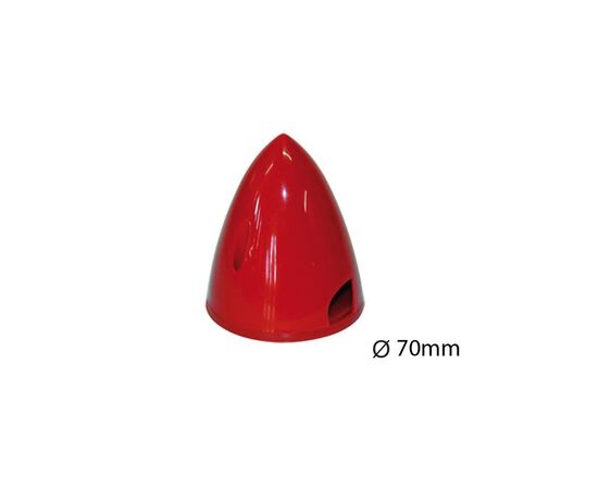 Kunststoff-Spinner rot Ø 70 mm Schlagfester Kunststoff-Spinner für rechts laufende Zweiblatt-Luftschrauben. Die Grundplatte des Spinners wird zwischen Motormitnehmer und Luftschraube montiert.In der Grundplatte befindet sich eine Ringnut, in welcher die Spinnerkappe genau definiert aufliegt.Die Befestigung mit der Grundplatte erfolgt über zwei Blechschrauben.