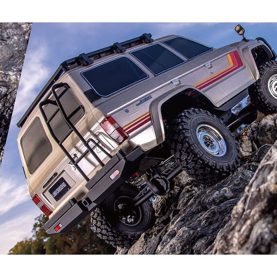 Kyoshos Toyota Land Cruiser 60 im Maßstab 1:10 fängt den legendären Look des Originals mit beeindruckendem Realismus ein. Die Karosserie aus robustem Polycarbonat verfügt über separat geformte Teile wie Dachgepäckträger und Heckleiter für zusätzliche Detailtreue. Ein realistisches RC-Erlebnis, das den Geist des klassischen Land Cruisers in jedes Abenteuer bringt.
