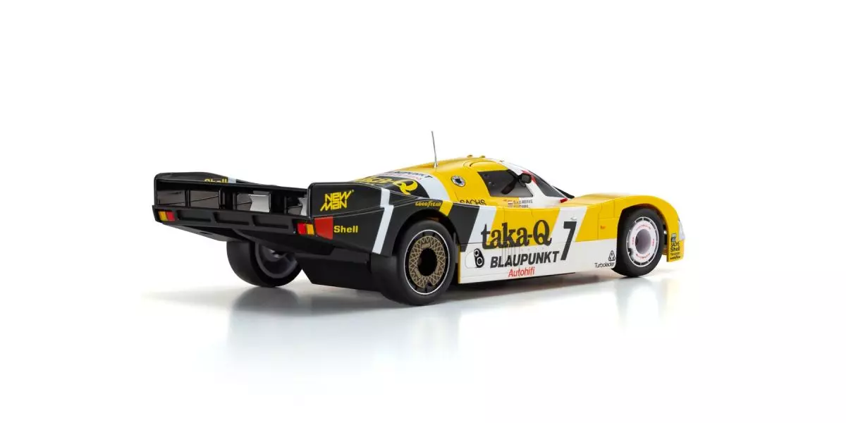 The 962C is a Group C-compliant machine developed by Porsche for endurance racing and sold to private teams. This 962C was used by the prestigious Joest Racing team, sponsored by an apparel brand, in the 1987 World Endurance Championship, and was fitted with a long tail for Le Mans.