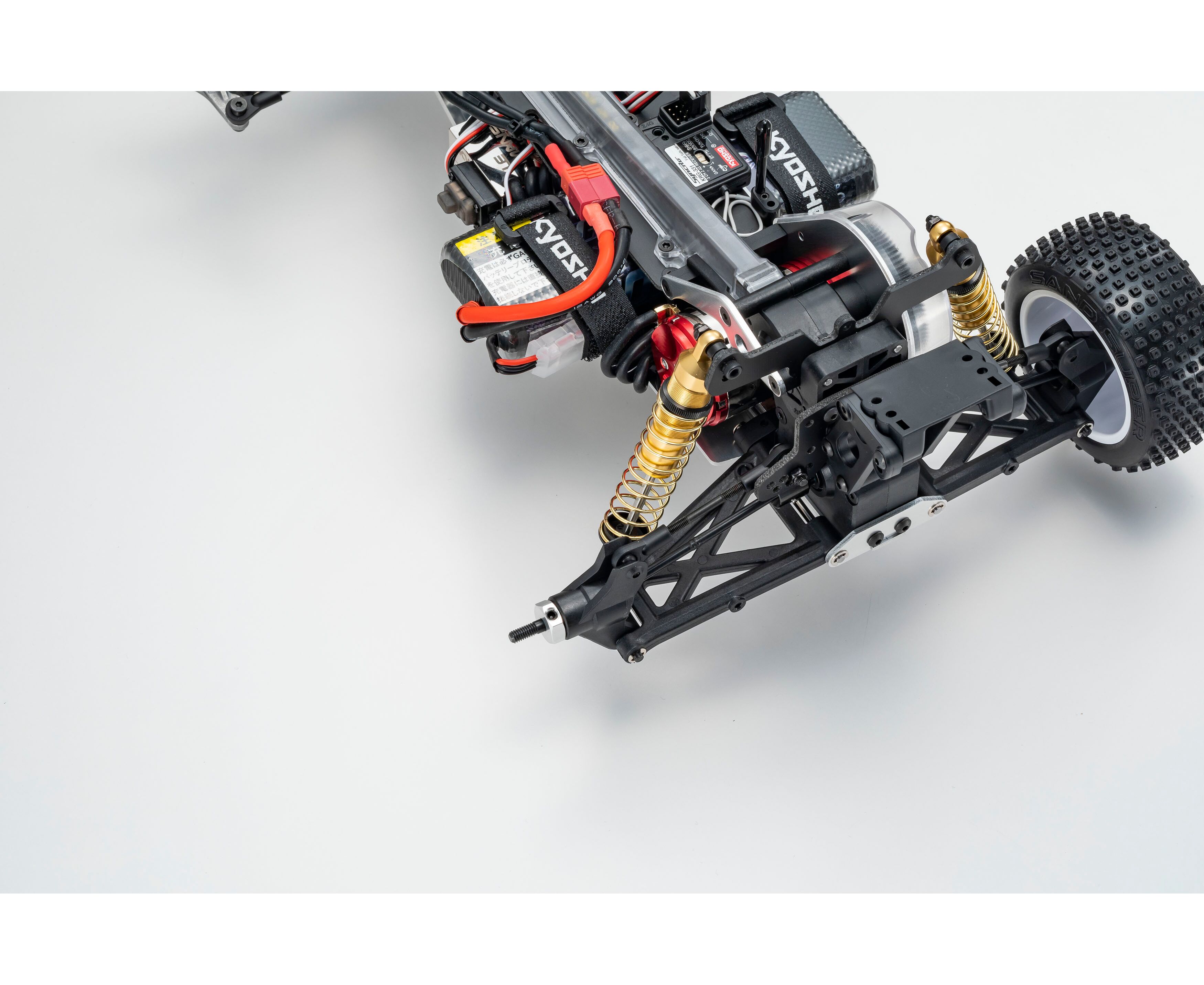 ●Batteriehalter ist mit verschiedenen Batterietypen kompatibel. Inklusive Klettverschluss mit KYOSHO-Logo.
