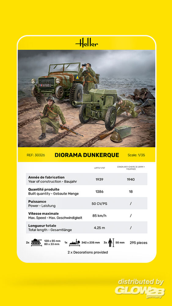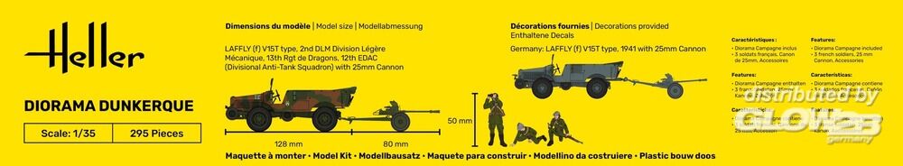 Die Schlacht von Dünkirchen ereignete sich im Mai und Juni 1940 im Zuge des Westfeldzugs während des Zweiten Weltkrieges. Die nordfranzösische Stadt Dünkirchen war der letzte Evakuierungshafen der Britischen Truppen, die 1939/1940 in Frankreich als Teil der zunächst defensiven Strategie der Westalliierten eingesetzt worden war. Der Laffly V15T war ein geländegängiges Fahrzeug mit Allradantrieb (4×4), das von 1938 bis 1940 in Frankreich hergestellt wurde, um leichte Artillerie zu ziehen und als Aufklärungs- und Verbindungsfahrzeug zu dienen. Er wurde ab 1937 von Laffly aufgrund der Ausschreibung des französischen Heeres entwickelt. Während des Zweiten Weltkriegs setzte die Wehrmacht zahlreiche erbeutete Militärfahrzeuge ein. Dazu gehörte auch der französische Laffly V15T, der häufig mit der aus Frankreich stammenden 25 mm Panzerabwehrkanone ausgerüstet war.
