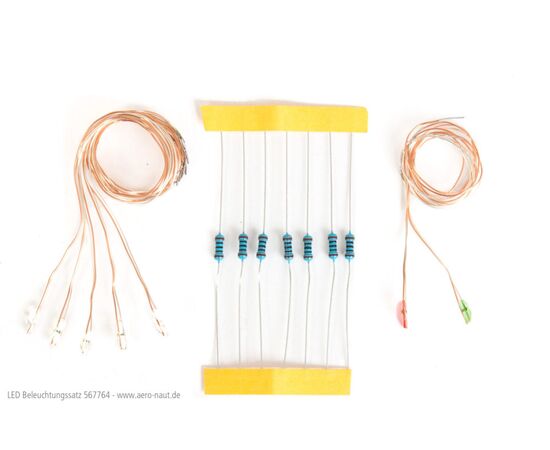 Das LED Beleuchtungsset besteht aus 5 weißen, 1 grünen und 1 roten LED. Die im Set enthaltenen Vorwiderstände sind für einen Spannungsbereich von 3-14V passend und müssen mit den LED verlötet werden. Die LED können z.B. mit unserem Lichtpaket Easy-Light (Bestell-Nr. 7019/03) verwendet werden, bei dem 5 Kanäle einzeln geschaltet werden können. Das Lichtset ermöglicht eine nautische Beleuchtung für kleine Schiffsmodelle mit Positionslicht (grün/rot) sowie bis zu 5 warm-weißen LED für unterschiedliche Beleuchtungsfunktionen. Die LED passen in unsere Lampengehäuse aller Baugrößen. LED Abmessungen ca. 2,5×6 mm.