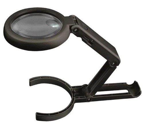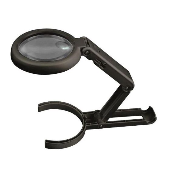 Diese tragbare Handlupe eignet sich ideal für Arbeiten aus nächster Nähe. Sie lässt sich ausklappen und fungiert auch als Schreibtischlupe.