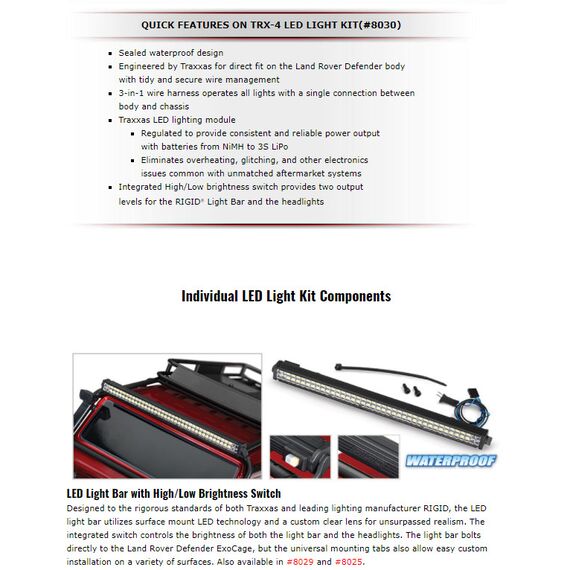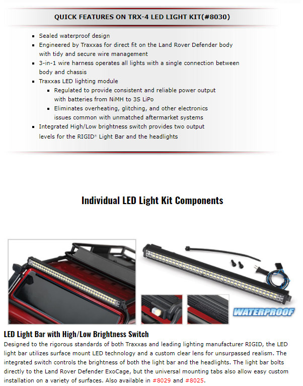 QUICK FEATURES ON TRX-4 LED LIGHT KIT(#8030)