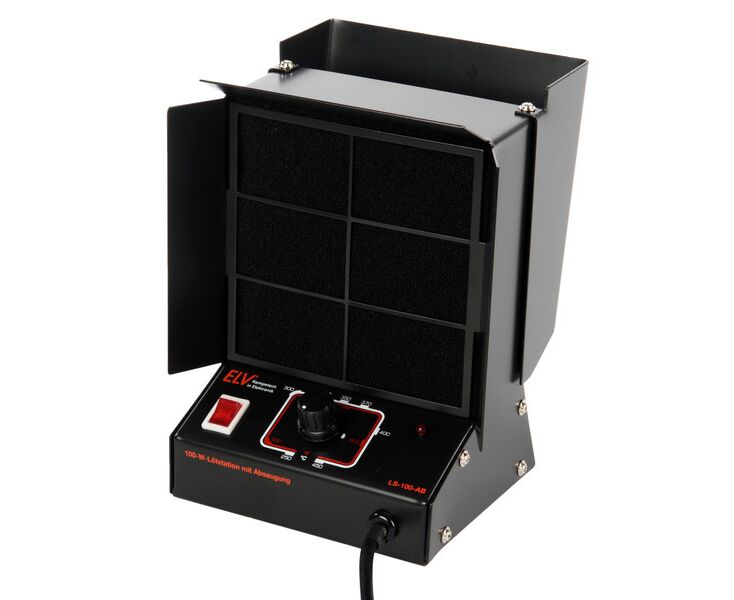Ein integriertes Lötrauchabsauggerät, das mit der Lötstation ein- und ausgeschaltet wird, sorgt für das Absaugen schädlicher Lötdämpfe. Lötrauch enthält giftige Stoffe, die erhebliche gesundheitliche Schäden hervorrufen können. Daneben schädigt auch der Niederschlag von Lötrauch, und die darin enthaltenen Flussmittelreste verursachen auf Platinen Qualitätsprobleme, insbesondere bei den dicht bestückten SMD-Designs. Die Lötrauchabsaugung ist hier das richtige Hilfsmittel, um für saubere Luft am Arbeitsplatz zu sorgen.