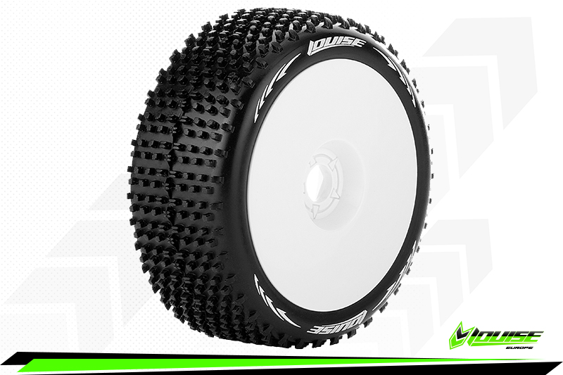 Louise RC - B-HORNET - 1-8 Buggy Reifen - Fertig Verklebt - Soft - Felgen Weiss - Hex 17mm - 1 Paar