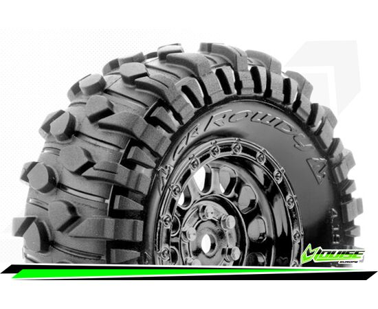 LR-CR-ROWDY - Class 1 - 1-10 Crawler Tire Set - Mounted - Super Soft - Black Chr