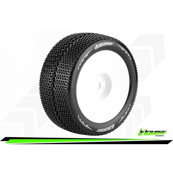Louise RC - T-TURBO - 1-8 Truggy Reifen - Fertig Verklebt - Super Soft - Felgen Weiss - 0-Offset - Hex 17mm - 1 Paar