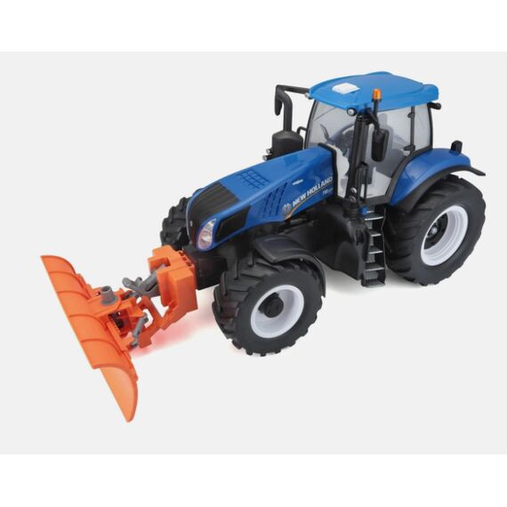 New Holland T8.320 Traktor mit Schneepflug im Massstab 1:16. Der Traktor ist ausgestattet mit Frontlicht + 3 Kanal Steuerung. Voll Funktionsfähig: Vorwärts, Rückwärts, Links, Rechts. Passend zu BRUDER Anhänger. 6x AA Batterien (nicht enthalten)