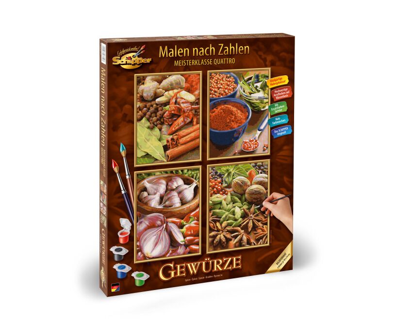 Schipper 609340719 Malen nach Zahlen, Gewürze - Bilder malen für Erwachsene, inklusive Pinsel und Acrylfarben, Quattro je 18 x 24 cm