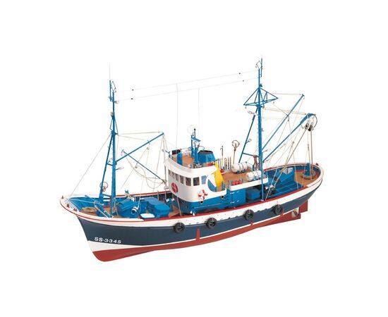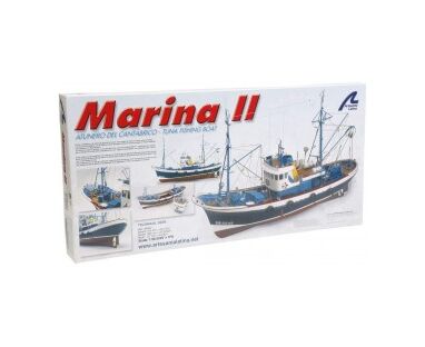 Build your 1:50 scale model ship of the tuna boat Marina II, a traditional tuna boat or 'boniter' from the Bay of Biscay. Its construction by means of false keel and frames approaches the assembly of its model to the construction of the real ship. Once it is built, this faithful miniature replica measures 24.01'' (610mm) length, 6.18'' (157mm) width and 17.71'' (450mm) height.