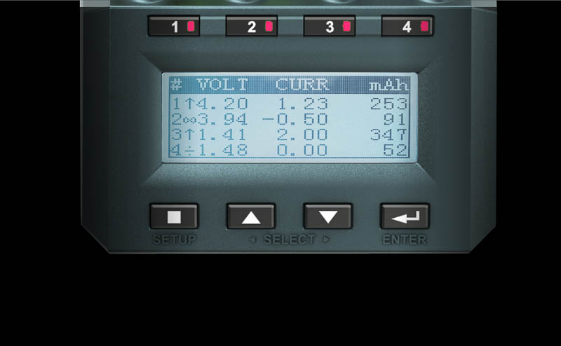 Effektive Kühlung Der eingebaute Aluminiumkühler transferiert die Wärme effizient nach außen und das auch schon bei extrem langsamer Lüfterdrehzahl. Kompaktes Display Das 128x64 Pixel große Display zeigt bis zu 5 verschiedene Ansichten während des Ladens. Einfaches Bedienelement Es gibt 8 Knöpfe über die das Gerät sich einfach bedienen und programmieren lässt. Vier nummerierte Knöpfe ermöglichen den schnellen Zugriff auf die einzelnen Slots. Einfache Programmierbarkeit In einfachen und erweiterten User Modes, der Lader kann bis zu 30 Profile verwalten. Diese können schnell aufgerufen werden und mit ein paar Klicks gestartet werden - sehr bequem. Sicherheits Stand Gummifüße und ein stabiler Klappfuß geben einen sicheren Stand. Die angewinkelte Standposition des Laders verbessern die Displaylesbarkeit und erhöhen die Kühlung an der Unterseite. APP Bedienung Über Bluetooth BLE 4.0 Technik kann der Benutzer auf seinem Smartphone den Lader bedienen und die Daten in Echtzeit überwachen. PC Bedienung Der Benutzer kann über die PC Link Software den Lader bedienen und die Daten in Echtzeit überwachen und sich diese als Grafik anzeigen lassen, zudem kann so die Firmware aktualisiert werden. Keine unsinnigen Modes Es gibt 6 Betriebsarten ('Break_in' nur für NiMH/NiCd/Eneloop Akkus, 'Storage' nur für Li-ChemieAkkus).