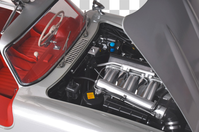 - Die Flügeltüren, Motorhaube und Kofferraum lassen sich öffnen, um ein realistisches, detailreiches Interieur freizulegen.