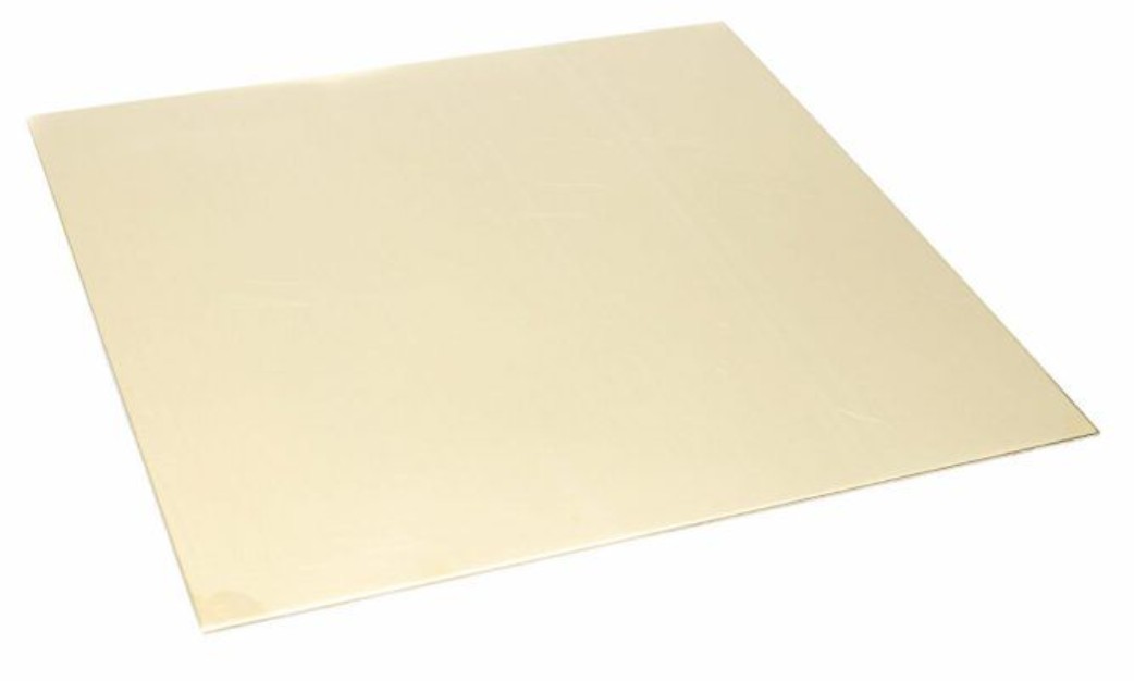 Messingblech halbhart, blank. VE = 1 Stück. Abmessungen ca. 200x200x0,5 mm