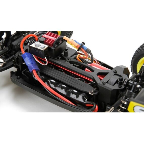 - ab sofort mit AVC-Technolgie und Forward Cab Bodydesign. Während der eingebaute 4500Kv Brushless Motor für bärenstarke Power sorgt, haben Sie dank fortschrittlicher AVC-Technologie selbst bei Höchstgeschwindigkeiten die volle Kontrolle über Ihr Fahrzeug. Mit seinem niedrigen Schwerpunkt und seiner beeindruckenden 4WD-Performance kann der Mini 8IGHT nicht nur bei Rennfahrern punkten, sondern auch bei Gelegenheits-Bashern. Das Chassis, der Motorträger, die Stossdämpfer und Dämpferbrücken sind aus Aluminium gefertigt und sorgen für die nötige Robustheit auf der Rennstrecke. Im handlichen 1/14-Massstab erscheint der Mini 8IGHT als RTR-Version, inklusive Spektrum DX2E Fernsteuerung, mit allem was Sie für einen Sofortstart brauchen. Optional kann der Mini 8IGHT auch mit einem 2S- (DYN1476) oder einem 3S-LiPo (DYN1477) betrieben werden.