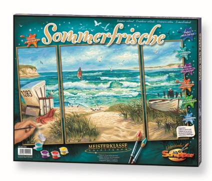 Dieses Küstenmotiv erinnert sehr stark an einen Ostsee- oder Nordseestrand, falls Sie also eine leichte frische Meeresbrise in Wohnzimmer holen möchten, ist dieses Motiv nur zu empfehlen. Die Malvorlage Sommerfrische ist eine neue Triptychon Vorlage, bestehend aus einem großem mittleren Bild, links und rechts eingeschlossen von zwei schmalen Bildern, alle drei zusammen ergeben ein großes Bild. Viel Spass beim Malen.