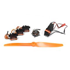 Antriebsset , bestehend aus: • Motor BL-AT2304 KV2300 mit Prop-Saver • Drehzahlregler BL 15A ESC • 3x Servo 8g • 2x Alu- Adapter für unterschiedliche Luftschraubenbohrungen • 2x O-Ring 20mm • 4x Blechschraube zur Motorbefestigung • Luftschraube 8040 • Anleitung Regler und Motor...