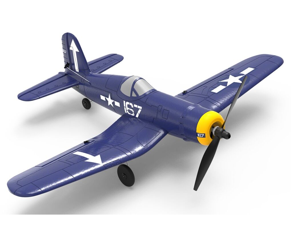 Die F4U-4 ist durch den Airobatic-Schalter an der Fernsteuerung in der Lage, grundlegende Kunstflugmanöver wie Loopings oder Rollen per Knopfdruck auszuführen.