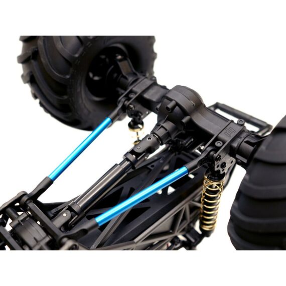 Eines der herausragenden Merkmale des Monster King Big Kahuna ist sein authentisches Fahrwerks- und Antriebssystem, das von echten, ausgewachsenen Offroad-Monster-Trucks inspiriert wurde. Die bewährte 3-Lenker-Aufhängung kombiniert zwei untere Aluminiumlenker mit einem einzelnen Y-förmigen oberen Lenker aus einem neuen, kohlenstoffreichen Verbundwerkstoff für erhöhte Steifigkeit und Haltbarkeit.