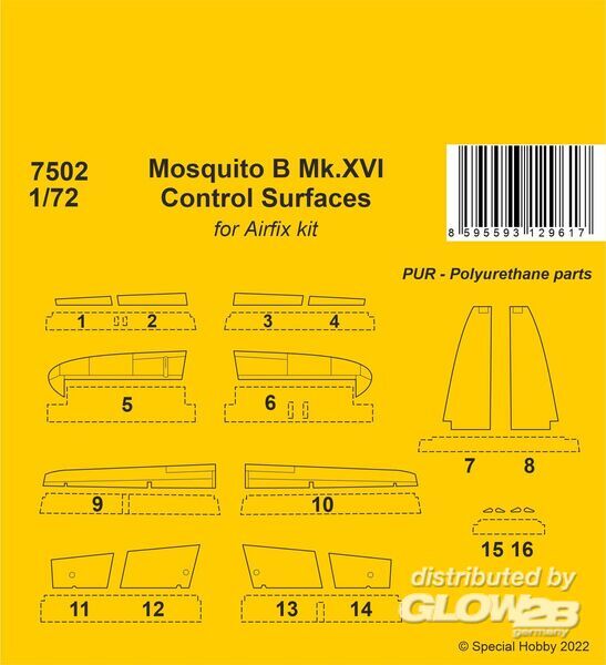Mosquito B Mk.XVI Control Surfaces / for 1/72 Airfix kit