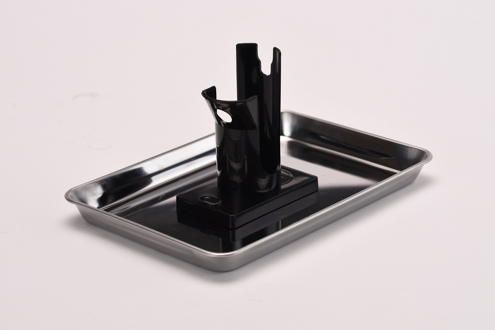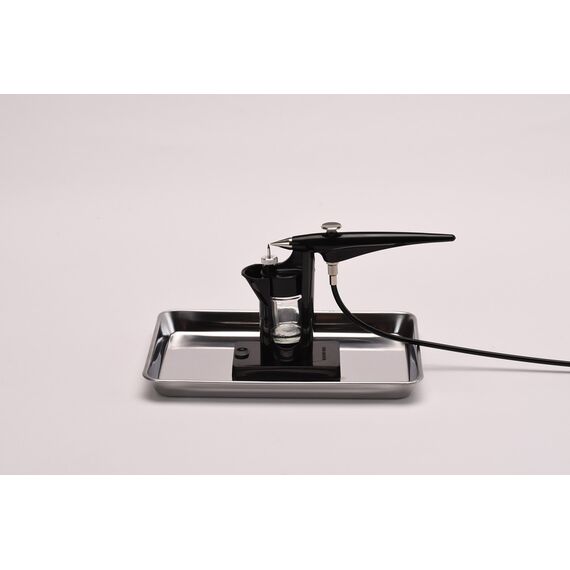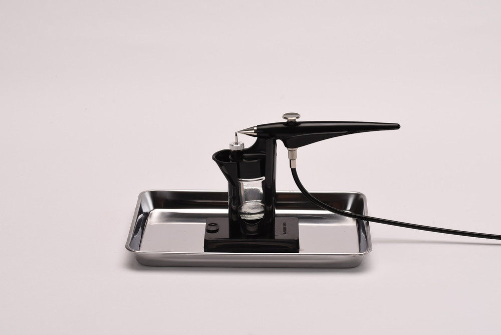 Ein Set aus einem Ständer und einem Metalltablett für Airbrushes/Pro Sprays.