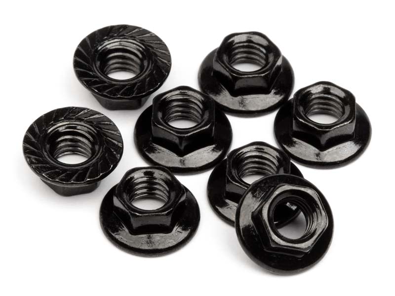 Flanged nut for use with MX60 series wheels on mini chassis cars.