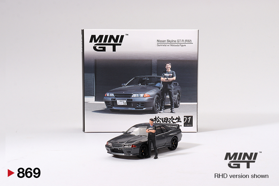 Nissan Skyline GT-R (R32) gunmet. mit Figur Tsugio Matsuda