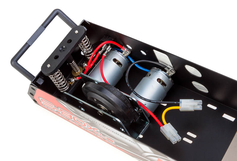 Die praktische Akkuhalterung ist für zwei Akkupacks vorgesehen und kann mit wenigen Handgriffen einfach eingeschoben werden. Gleich 2 55er Motore sorgen für die nötige Power der Starter Box!