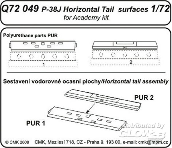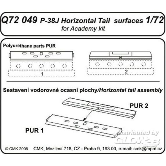 P-38J Lightning Tail horizontal surfaces für Academy Bausatz
