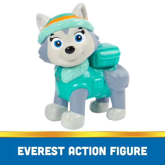Mit ihrem ca. 13 cm langen Schneemobil lädt Everest alle Fans der TV-Serie Paw Patrol zu spannenden Abenteuern ein. Das Fahrzeug von Everest verfügt authentische Details und einen beweglichen Greifarm. Die Everest-Figur im Standard-Maßstab der Hero Pups (ca. 7 cm groß) ist ebenfalls im Lieferumfang inbegriffen. Die Spielfigur Everest und ihr Fahrzeug bestehen zum Großteil aus recyceltem Kunststoff. Inhalt: 1 Fahrzeug 1 Figur.