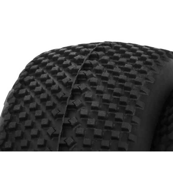 New from Performa Racing are these pre-mounted wheels and tires for 1:8 buggies. They’re available in 4 tread patterns and 4 compounds: Pink Compound (Super Soft), Yellow Compound (Medium Soft), Red Compound (Soft) and White Compound (Medium). The tires are mounted on Performa Racing Carbon wheels that feature high quality nylon reinforced with carbon graphite to increase stiffness and consistency throughout the race. Testing and race results have shown a significant improvement in grip and better corner speed. The Carbon wheels are black, and yellow and white stickers are available separately as option parts to change the look. Closed cell inserts are standard equipment. Careful attention is focused on the mounting process for a strong and long lasting glue seal. These are the easy way to bolt on a fresh set of tires, just open the package and you’re ready to go racing.//////Performa Black Jack tires have medium tread blocks and an asymmetrical tread design that works well on dusty tracks when the racing line is visible. The tires are mounted on Performa Racing Carbon wheels that feature high quality nylon reinforced with carbon graphite to increase stiffness and consistency throughout the race. Testing and race results have shown a significant improvement in grip and better corner speed. The Carbon wheels are black, and yellow and white stickers are available separately as option parts to change the look. Closed cell inserts are standard equipment. Careful attention is focused on the mounting process for a strong and long lasting glue seal. These mounted wheels and tires are sold in pairs.//////PA9386 Black Jack Mounted Tire (Pink Compound/Carbon Wheel/1:8 Buggy)///PA9387 Black Jack Mounted Tire (Yellow Compound/Carbon Wheel/1:8 Buggy)///PA9388 Black Jack Mounted Tire (Red Compound/Carbon Wheel/1:8 Buggy)///PA9389 Black Jack Mounted Tire (White Compound/Carbon Wheel/1:8 Buggy)