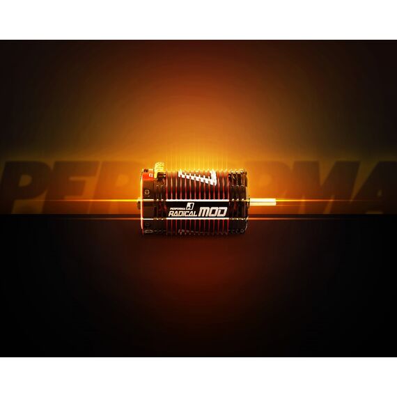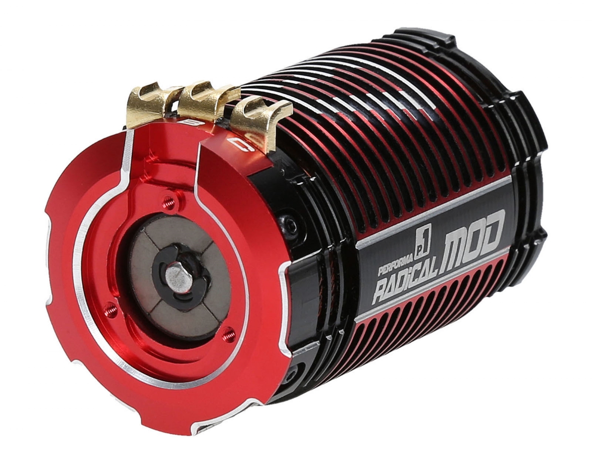 Performa Radical 1/8 motors feature the brand new Radical Sensor System for superior drivability and extreme power. The Radical Sensor System is composed of a separate magnetic ring featuring 4 magnets for sending precise and accurate rotor location to the controller. It also protects the sensor system from being disturbed by inappropriate signals.///Performa Radical motors deliver reliable on-track operation and provide a new dimension in 1/8 Racing. Compatible with all controllers. Suitable for 1/8 buggies, SCT and on-road cars.