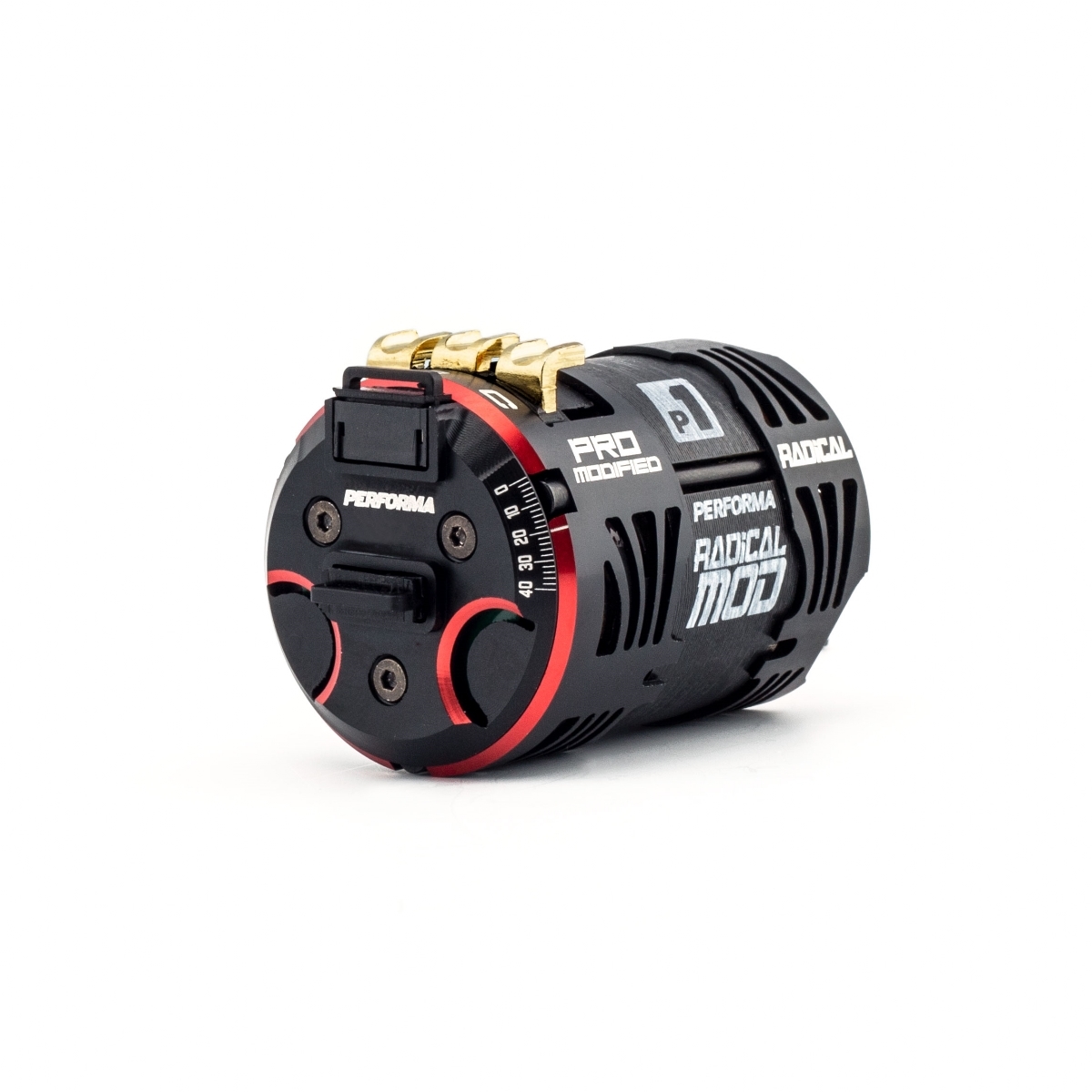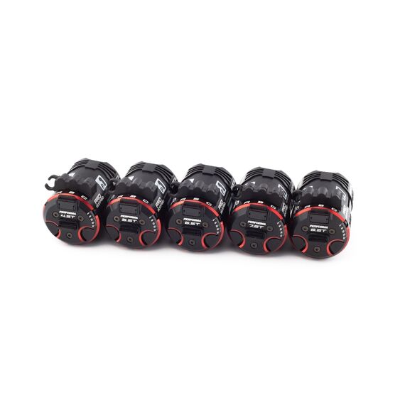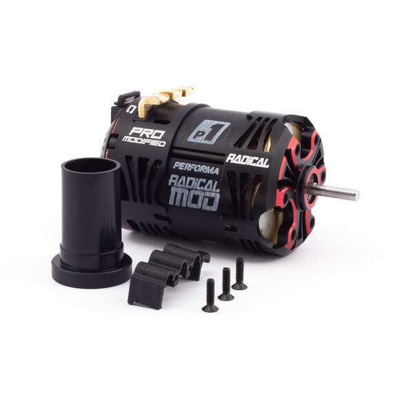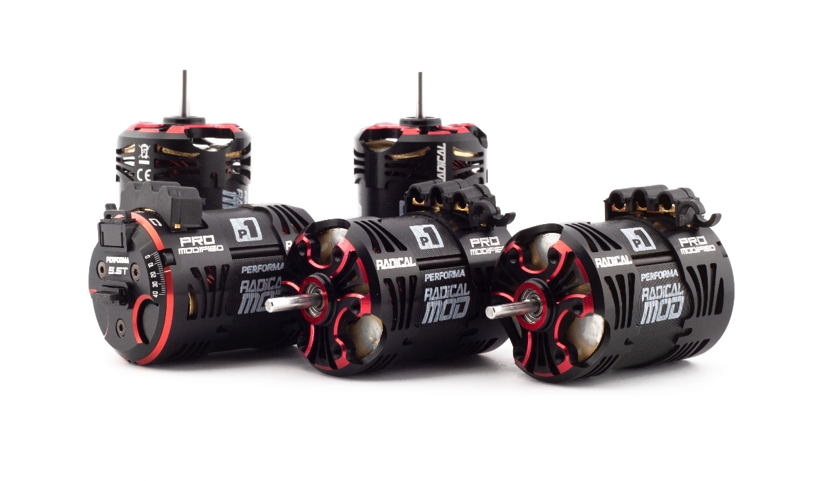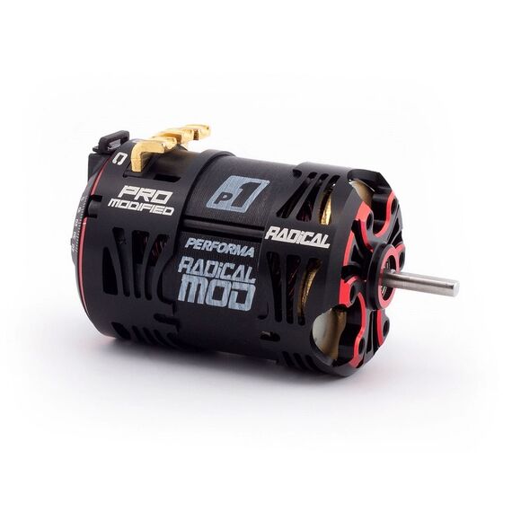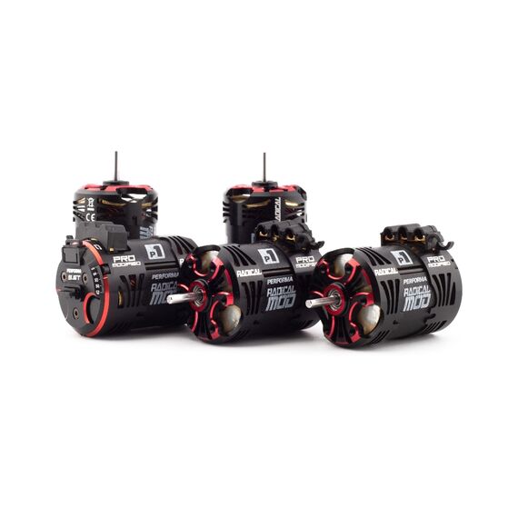 The new Radical ultra-lightweight aluminum housing features maximized cut-outs and openings to increase the cooling surface area and improve airflow for low running temperatures and great consistency. Accurate timing settings allow many setting options in the highly competitive modified racing class. Special Radical magnets balanced on the Performa dual-axis machine create high rpm and low vibration. The Radical motors are equipped with ultra-low resistance soldering and our unique sensor board which is compatible with standard controllers and perfectly matched for the Performa HMX controllers. High quality black and red anodizing and laser etched logos provide a special look for race cars.