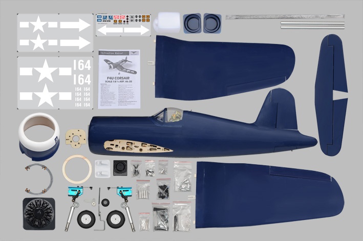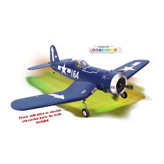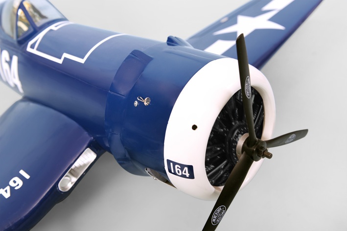 Die F4U Corsair ist für Elektro- oder Verbrennerantrieb ausgerüstet. Alle dafür benötigten Teile sind - genau wie das Einziehfahrwerk - im Lieferumfang enthalten. Der Akkuwechsel kann über die abnehmbare Kabinenhaube schnell und unkompliziert durchgeführt werden. Aufgrund des hohen Vorfertigungsgrads ist das Modell in kürzester Zeit fertig gestellt.