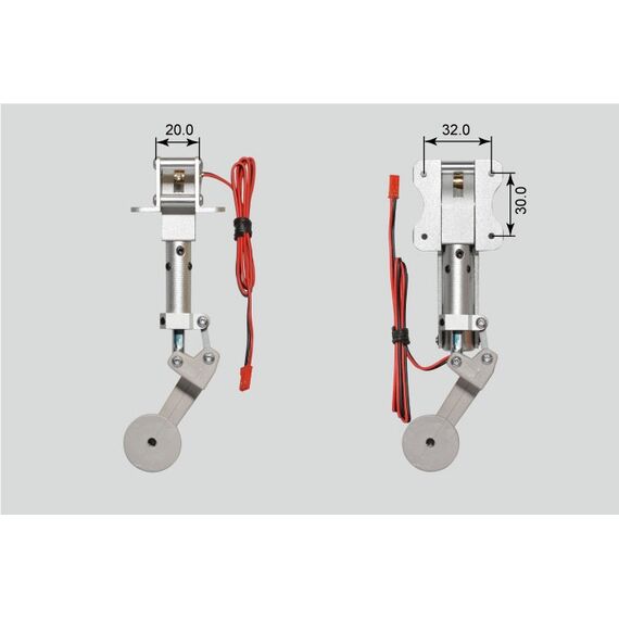 Elektrische Einziehfahrwerke haben gegenüber den mechanischen oder pneumatischen Fahrwerken einen großen Vorteil: denn der Servomotor ist bereits fertig im Fahrwerk integriert. Das elektrische Fahrwerk wird mit der Control-Box direkt am Empfänger angeschlossen werden.