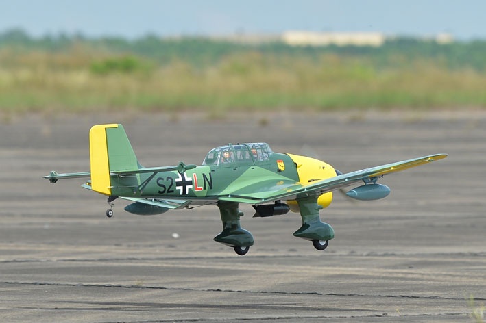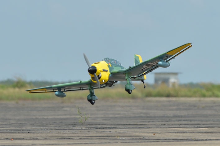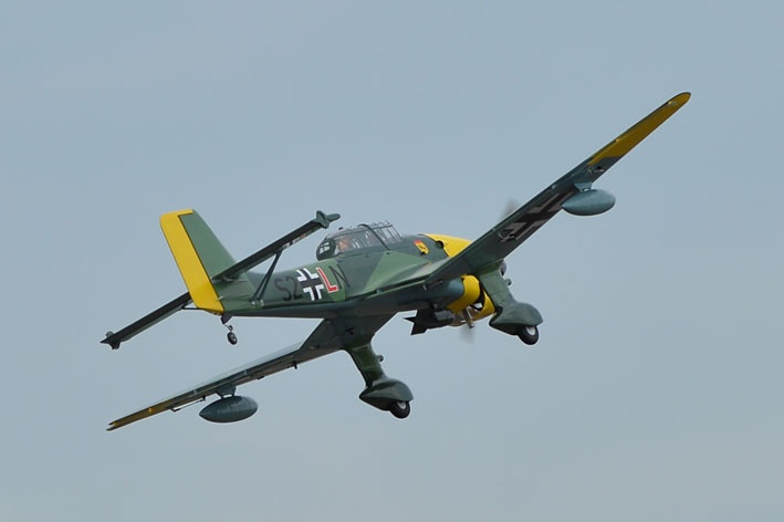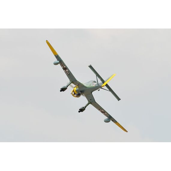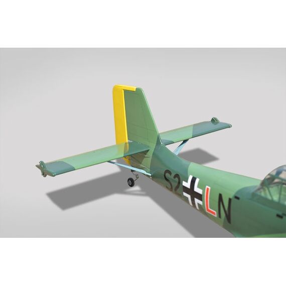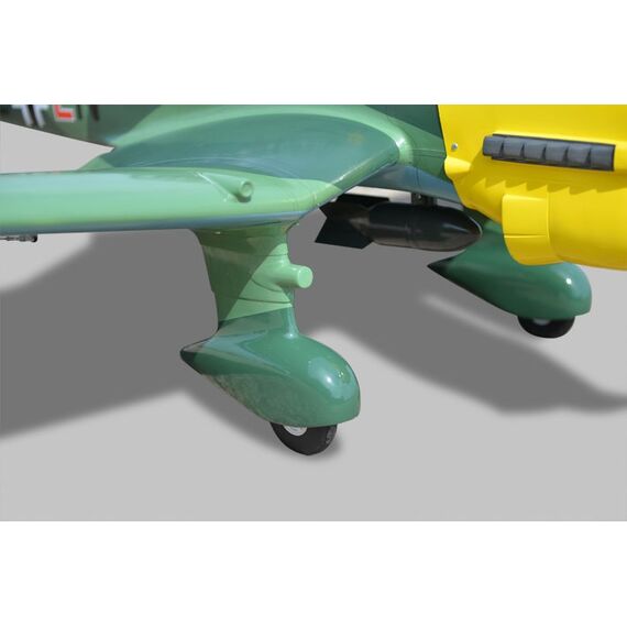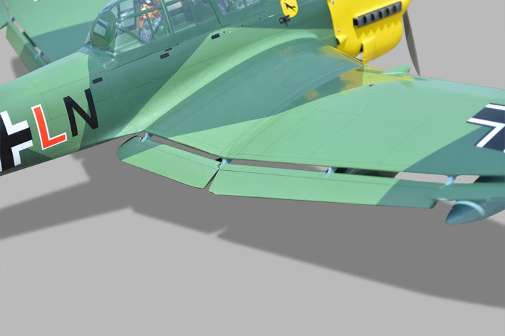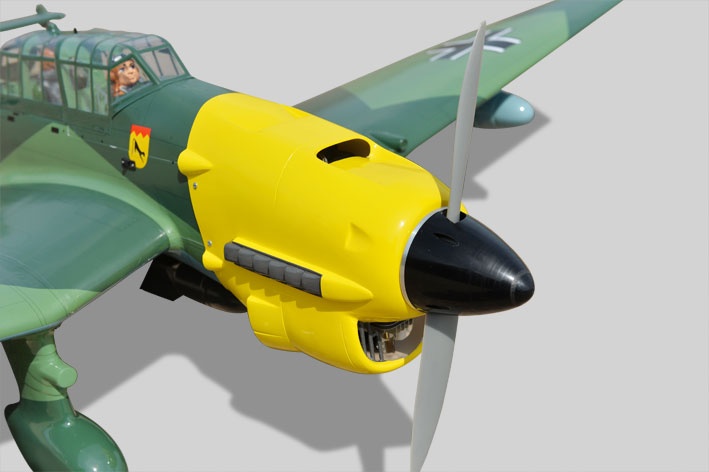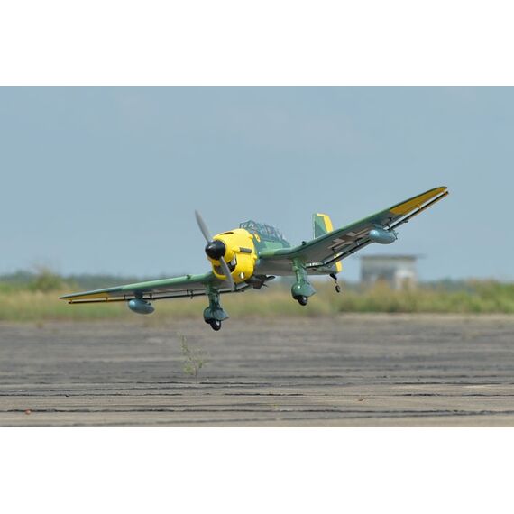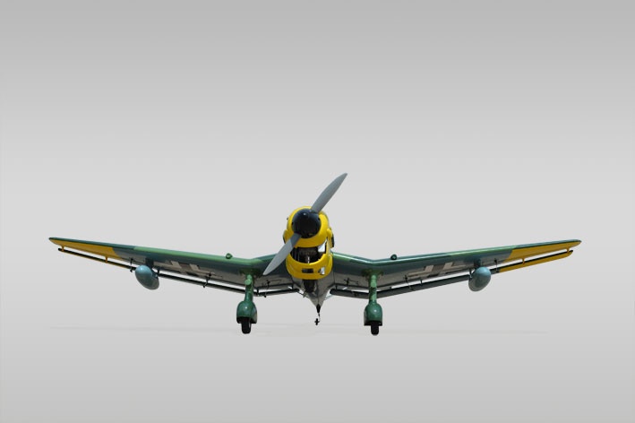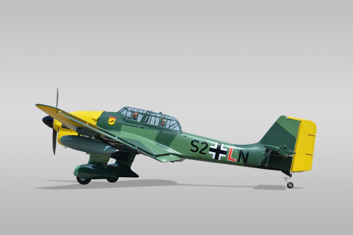 DieSTUKA Ju87 ist ein einmotoriges Kampfflugzeug aus der Zeit des Zweiten Weltkrieges. Es war ein Sturzkampfflugzeug – STUKA -, das mit dem Geheule der Sirenen seinen Sturzflugangriff ankündigte. Die Motorhaube und Radschuhe sind aus GFK gefertigt und fertig lackiert. Der STUKA Ju87 Bomber ist komplett aus Holz hochwertig aufgebaut und mit Original Oracover Folie bespannt. Hervorzuheben sind die vorbildgetreuen Querruder und Landeklappen. Mit den empfohlenen kraftvollen Motoren erreicht das Modell beeindruckende Flugleistung. Das Modell hat ein sehr gutmütiges Flugverhalten, welches auf die Größe, den Knickflügel und der Bauweise als Unterdecker zurückzuführen ist. Konzipiert ist das Modell für einen 20 ccm Verbrennungsmotor oder einen 50 mm Brushless Motor. Der Zugang zum Antriebsakku erfolgt durch die abnehmbare Kabinenhaube. Die STUKA Ju87 ist bis zu 95% vorgefertigt und mit Oracover Folie bespannt, alle Kleinteile, die für den Aufbau benötigt werden, sind im Lieferumfang enthalten.