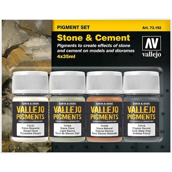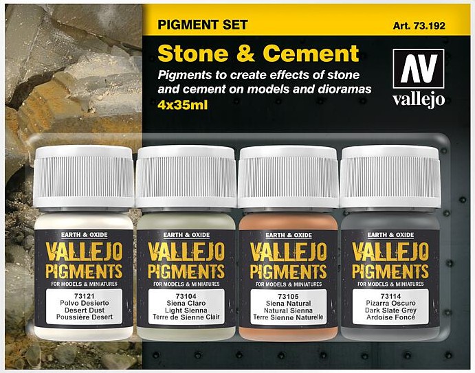 Pigment-Set zur Nachbildung von Stein und Beton, mit Anleitung, 4 x 35 ml. (73121/73104/73105/73114)