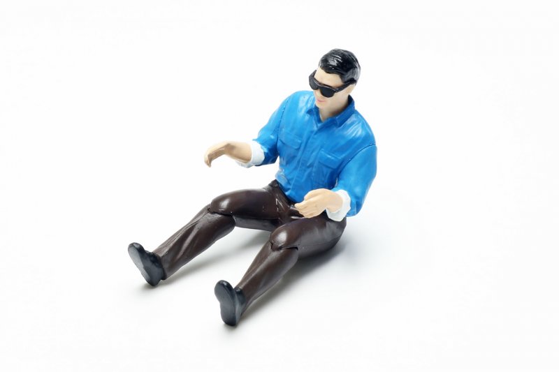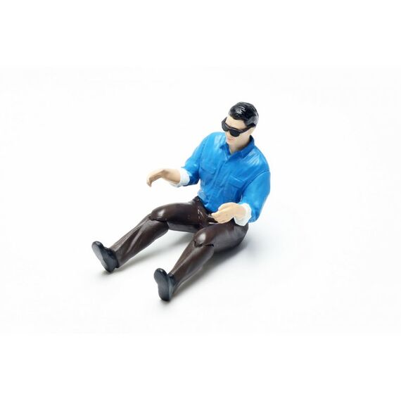 Handbemalte Pilotenpuppe aus Kunststoff mit beweglichen Beinen.