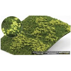 Diorama Grasbüschel, Blumen gelb, 15x21cm Fertiger Diorama Untergrund. Die Diorama Matte, kann auch geschnitten und angepasst werden. Blumen ca. 2 - 4mm hoch